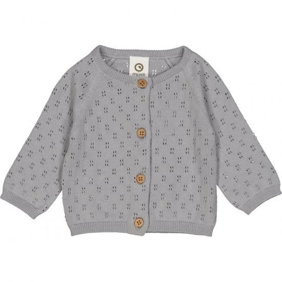 小さな女の子向けのキュートなニットカーディガン。さりげない透かし編みと大きめのボタンがアクセントとなっています。ベーシックなカラーとデザインはどんなシーンにも◎。オーガニックコットン100%の肌触りのよさもお楽しみいただけます。