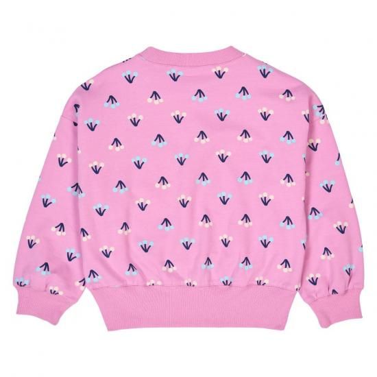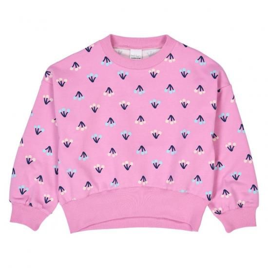 【裏起毛】鮮やかなピンクをベースに、北欧らしい遊び心あふれるプリントが目を惹くスウェットシャツ。小さな花々がチャーミングな印象にしてくれます。やわらかく伸縮性のある生地は動きやすく、アクティブな日にぴったりの1着。パンツやスカートとのコーディネイトも楽しめます。