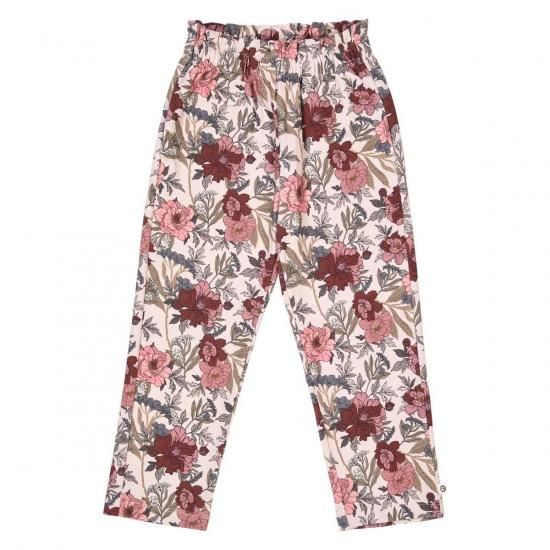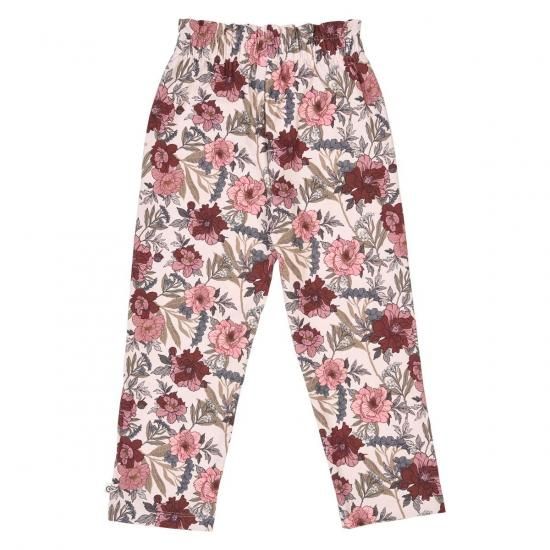 上品なボタニカル柄がかわいい女の子向けパンツ。ウエストはゴム仕様、ゆったりとしたシルエットでリラックスして着用できます。やわらかく伸縮性のある生地は動きやすく、気持ちいい履き心地。サイドにはポケットがついています。
