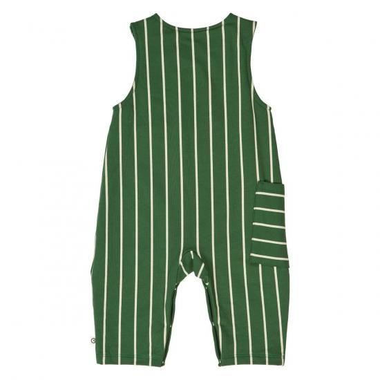 【裏起毛】ディープグリーン×クリームの組み合わせがさわやかなオーバーオール。右足には飾りポケットがついていて、かわいいアクセントに。肩部分と股下のスナップボタンで、お着替えしやすいのもうれしいポイントです。柔らかく伸縮性のある生地は、体の動きによくフィットしてくれます。