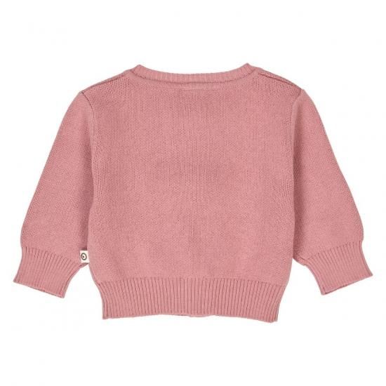 2輪の花が編みこまれた、女の子向けのカーディガン。デザインだけでなく、着心地にもこだわりオーガニックコットンを100%使用しています。やわらかなピンクカラーは上品で、かわいらしさをプラス。ワンピース、パンツと合わせるボトムスを選ばないのも魅力です。