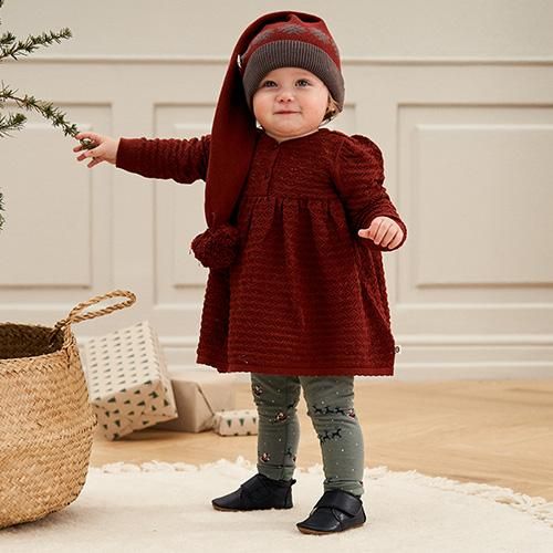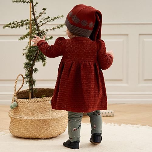 やわらかなコットンを100%使用したキュートなニットなドレス。ドレスの裾には女の子らしいフリルが。大人っぽいワインカラーは、お出かけやおめかししたいシーンにもぴったり。レギンスとあわせて秋冬のおしゃれが楽しめます。