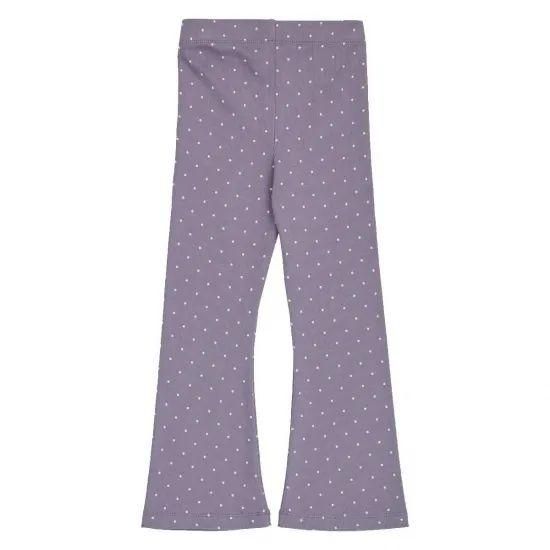 大人っぽいくすみパープルがキュートなフレアパンツ。全体に散りばめられた白いドットが、かわいらしさをさりげなくプラス。裾に向けて広がるシルエットもきれいで、秋冬のおしゃれを盛り上げてくれます。ウエストはゴム入りでフィット感も抜群。伸縮性のある生地は動きやすく、心地よくフィットしてくれます。