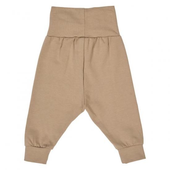 Musliのベビー向け定番アイテム。ウエストの幅広リブがポイントになったシンプル・ベーシックなパンツです。伸縮性にすぐれた動きやすいパンツは耐久性も抜群。サルエル風でゆったり履けます。季節や性別を問わず、長く着用できるのもうれしいポイント。