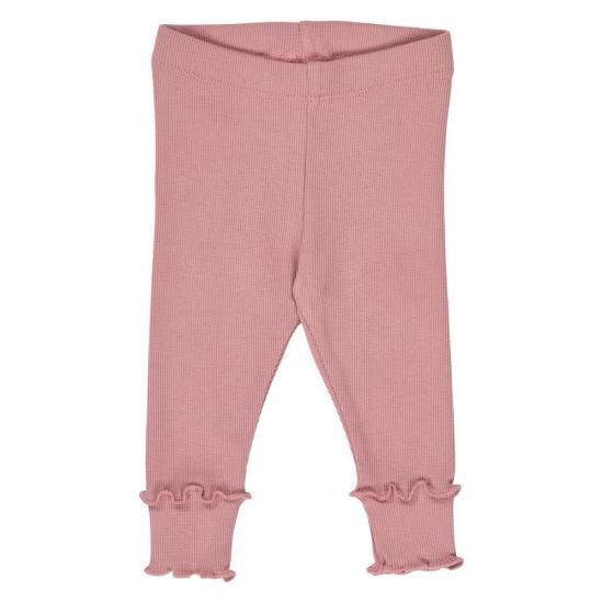 ニュアンスあるピンクカラーが素敵なレギンス。足元のフリルが、さりげなくかわいらしさを演出。スカートやワンピースとの相性抜群で、明るく華やかな印象に。伸縮性のある生地で、動きやすいのもうれしいポイント。秋冬のおしゃれを盛り上げる1着です。