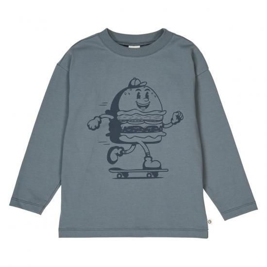 スケートボードに乗ったハンバーガープリントが楽しい長袖Tシャツ。ポップなデザインがユニークで、カジュアルに着たい1着。やわらかく伸縮性のある生地は動きやすく、フィット感も抜群。デニムなどお手持ちのアイテムともよく合います。