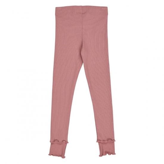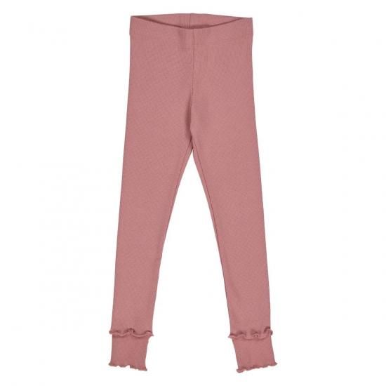 ニュアンスあるピンクカラーが素敵なレギンス。足元のフリルが、さりげなくかわいらしさを演出。スカートやワンピースとの相性抜群で、明るく華やかな印象に。伸縮性のある生地で、動きやすいのもうれしいポイント。秋冬のおしゃれを盛り上げる1着です。
