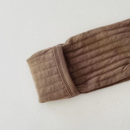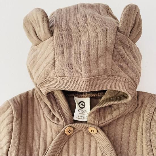Cotton quilt bodysuits・サイズ:68cm ・カラー:Walnut ・素材:オーガニックコットン95%/リサイクルポリエステル5% |
